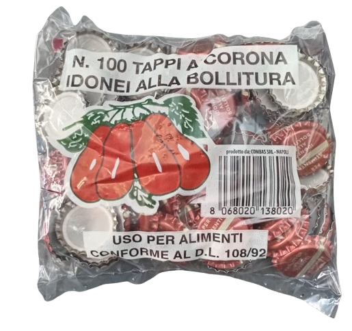 Questa confezione da 100 pezzi è ideale per produzioni casalinghe o artigianali. Il diametro standard da 26 mm garantisce la massima compatibilità con le tappatrici manuali e